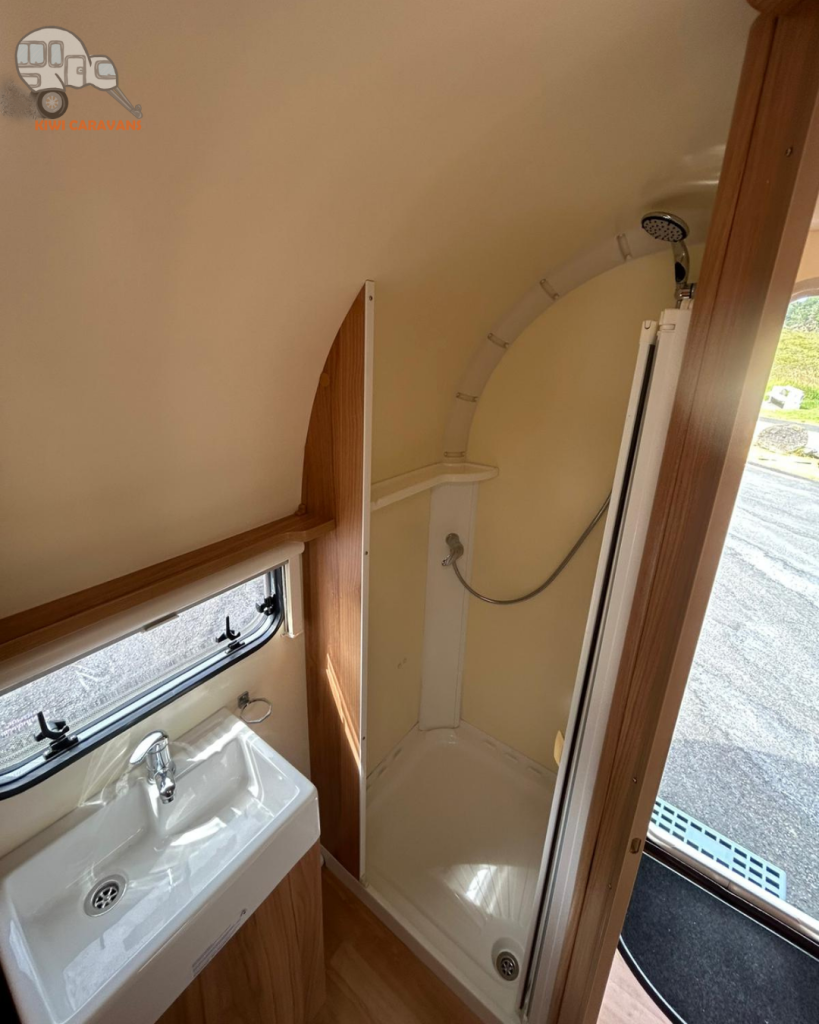 At the rear of the caravan is the full end bathroom which has a full sized shower, separate toilet, wash basin, plenty of space to change and more storage – you’ll be comfortable wether you’re away for a weekend or multiple weeks!